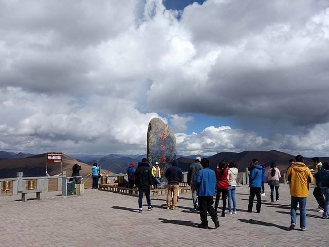 每座山的最高处会立有一块指示海拔高度和山名的牌子,很多人都会在牌子下面拍照留念。这是折多山口的黑色石碑,导游告诉我们,它之所以被称作关,是因为以此为界,以东的藏汉杂居的地区为关内,以西的藏族聚居地为关外。翻过折多山就是青藏高原,就进入真正的藏区。