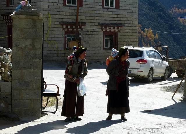 翻过高尔寺山,我们的车停在雅江县城附近的一个小村庄旁加水。