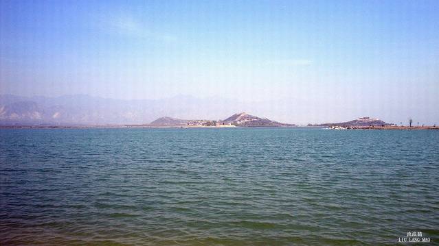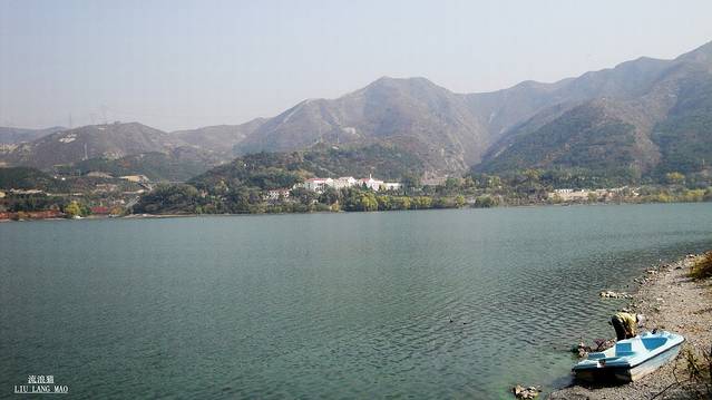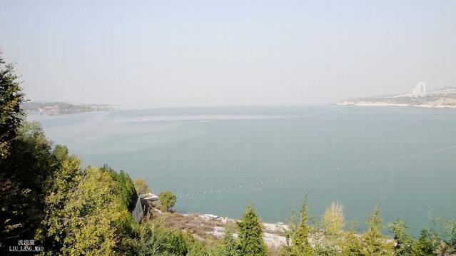 告诉大家一个鲜为人知的景点,看见对面的小岛了吗?那是卧牛山,水位高的时候是岛。在岛的北侧有一座石头村,那是拍摄《地雷战》时候的取景地。就是《地雷战》的那个小山村。现在没有居民,N年前我曾经去过,那时候还没有数码产品,所以没有留下照片