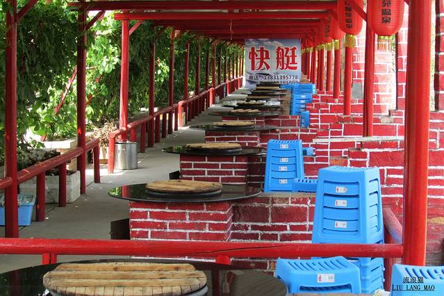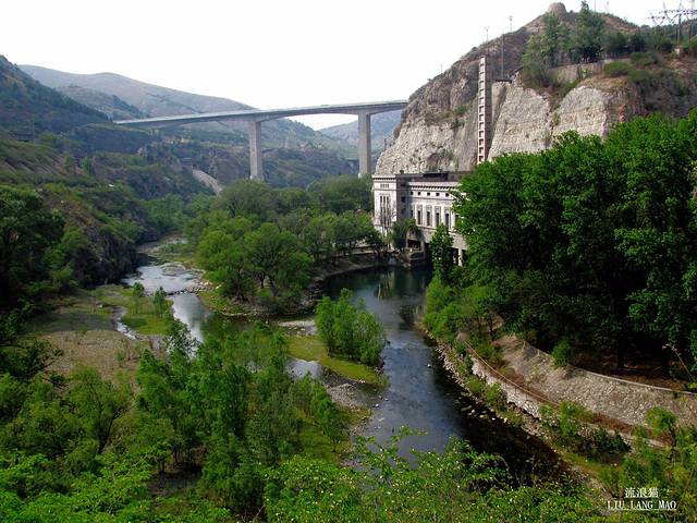 上面几张照片一般游客已经不能拍到了,新修的康祁路绕过了这条通往大坝的路,社会车辆禁行了。大家可以沿康祁路到官厅镇,往回折返,(那里有一个森林饭店的牌子)到河西岸的森林饭店。这里的灶台鱼相当不错。我们9个人要了400元一锅的足够吃了。