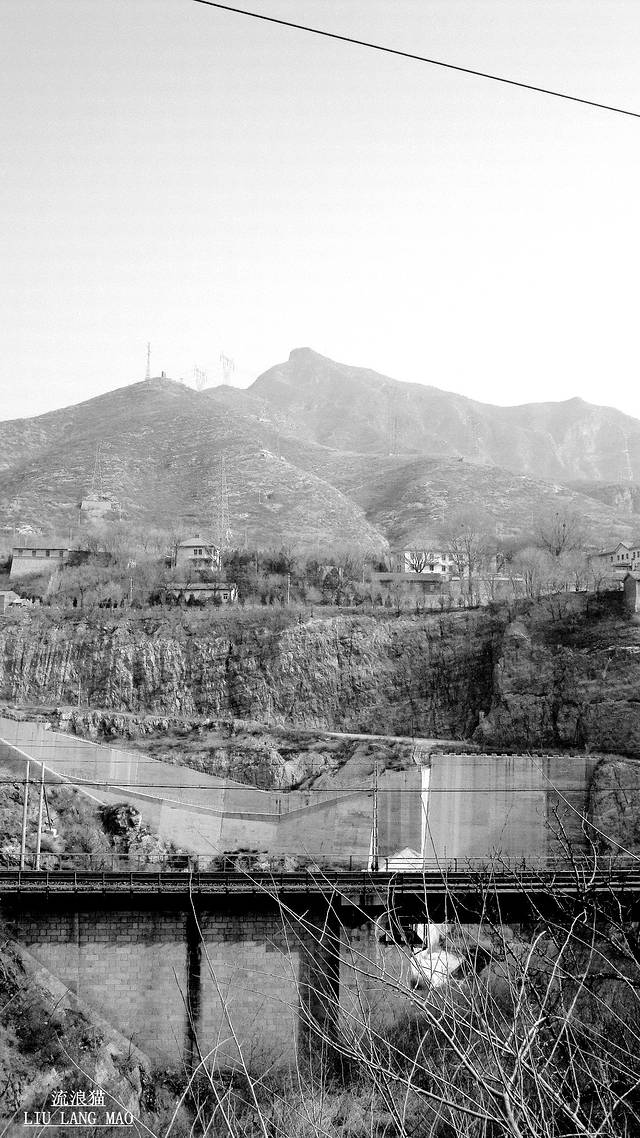 最左的铁路是丰沙线复线,70年代初修成。小公路是通往旧庄窝 幽州 沿河城的路,黑沟里的是丰沙线一期。远处是大坝和水库。右侧是溢洪道。