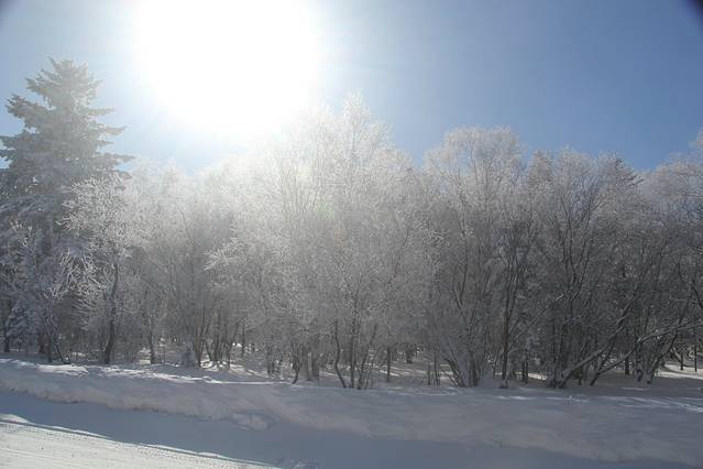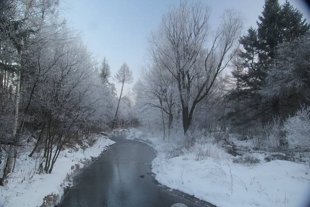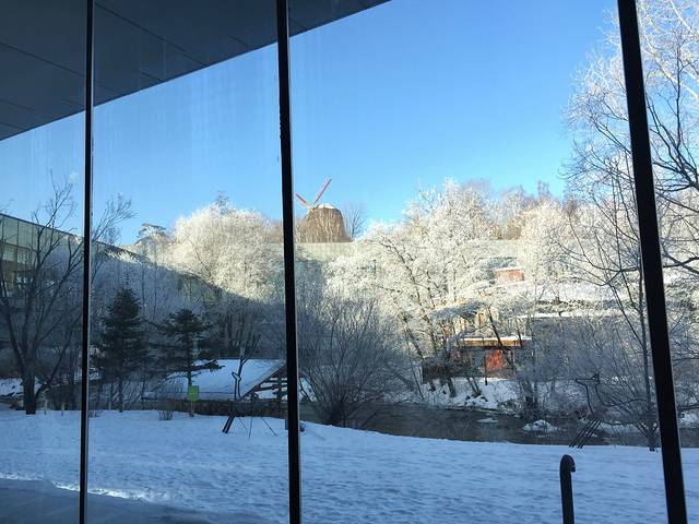 8点30左右抵达酒店,吃了早餐,忽然发现酒店窗外的风景也好美啊,也有雾凇。