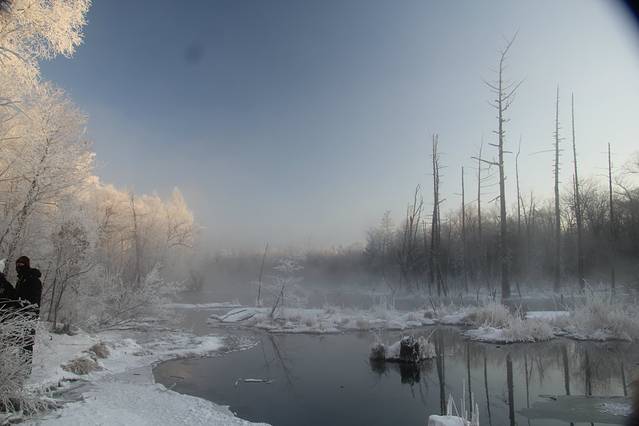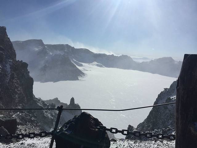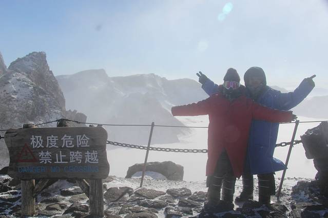天池,我只感受到它的严寒,来不及欣赏它的美,但坦白说,我也并不觉得它美,挑战下它的严寒吧~零下47.5度,手机拿出来没一会就死机了,身体也是迅速变冷,2-3分钟就觉得要坚持不了。