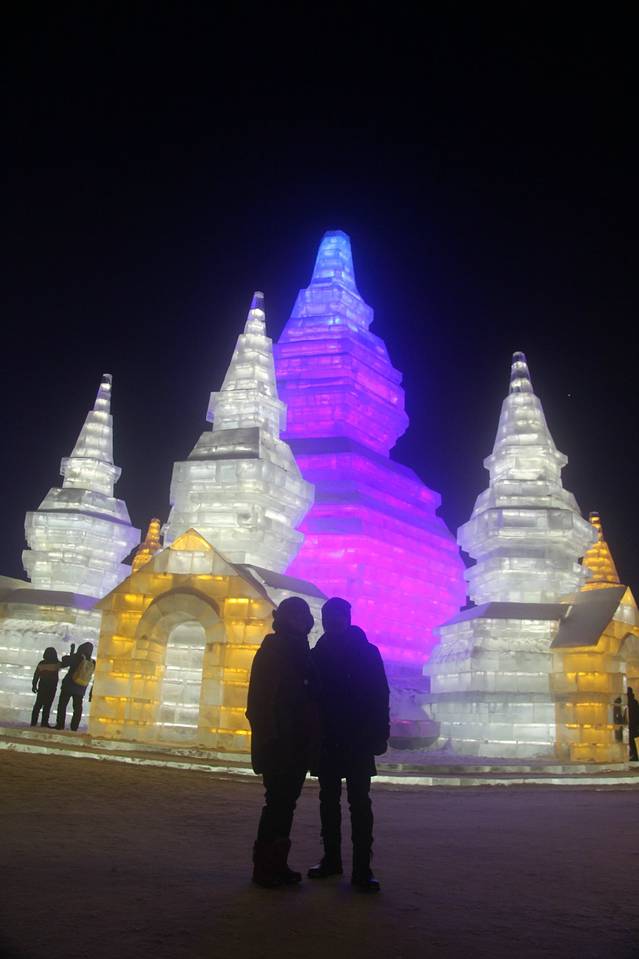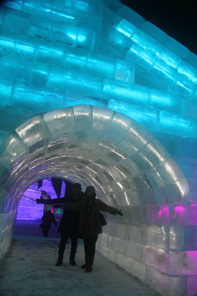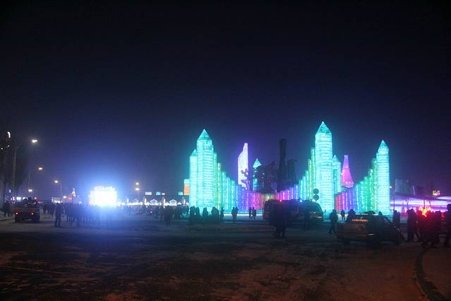 冰雪大世界,里面玩的冰上项目挺多的,4点开始亮灯,夜景要比白天的景色美多了,所以大家都是奔着夜景去的。其实可以挑人少的时候先把想玩的都玩遍,比如300m的大滑梯,然后吃点东西,赏完夜景就立马回家吧,晚上实在是冷!