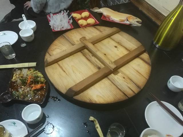 机场去酒店的车程大概1.5小时,因为就吃了早餐,转机时帮处理爸妈登机事宜,没有吃午餐,沈阳飞长白山的飞机上只提供1瓶矿泉水,太饿,就请司机带我们先去二道河镇吃了晚餐。晚餐是在长白山御麓泉度假酒店旁的林海雪原铁锅炖吃的,味道还可以,司机说那里有二人转,然而那天换了人,来个新的主持和歌手,歌不错,但是讲着讲着就开讲荤段子。。。。。。