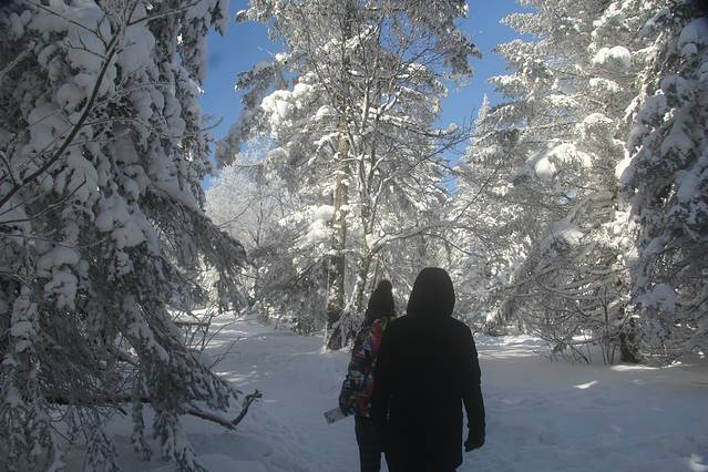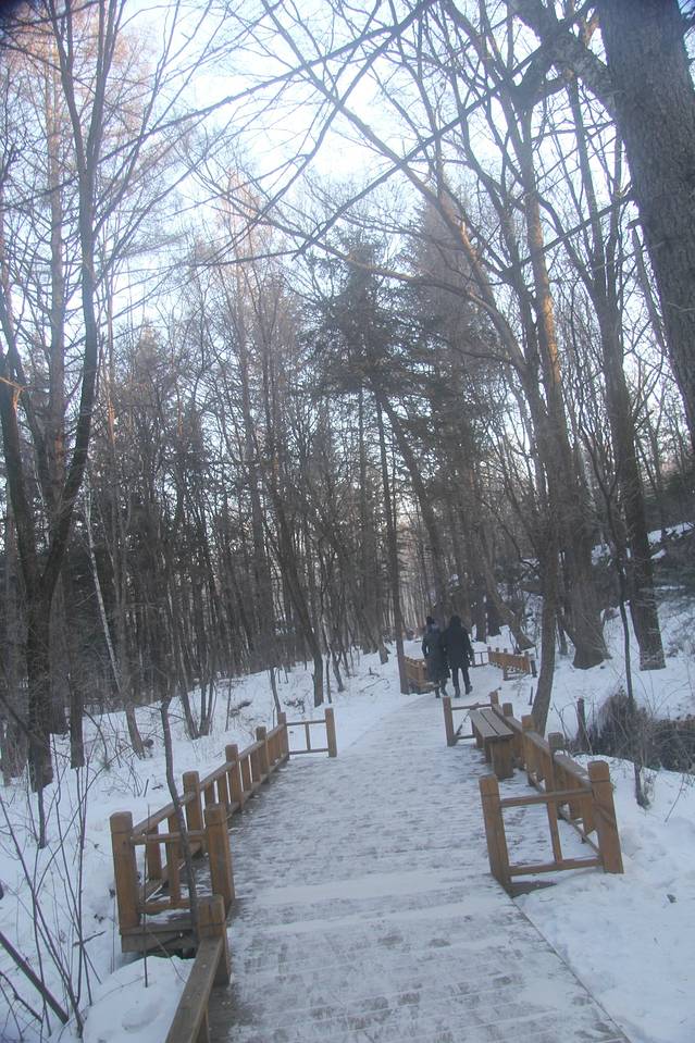 去瀑布有2种方式,台阶爬上去大概30分钟,乘雪地摩托大概2分钟,我们选择了乘摩托,达到上面时,摩托司机说,往里走一段就是瀑布了,我们就蒙了,说我们要去天池,就立马又坐摩托下去了。