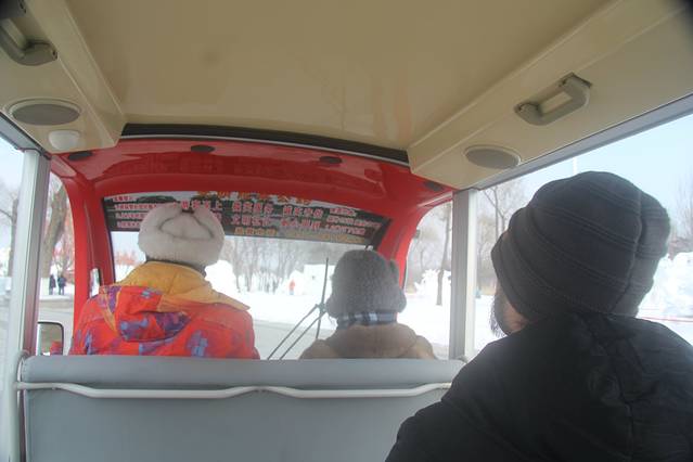 出雪博会,门口的松花江上有好多玩的,玩了卡丁车、滑冰(坐在椅子上的那种)。