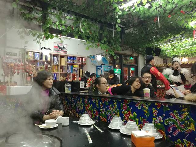 晚上在长白山大剧院旁的铁锅炖吃了晚餐。的士司机说,万达度假区里面的餐厅都不正宗,这家稍微好些。这家店有很多明星来吃过,进店就能看到各种照片。吃饭时,有二人转演员表演,还不错。位子可以提前预订的,做大堂可以看到表演。