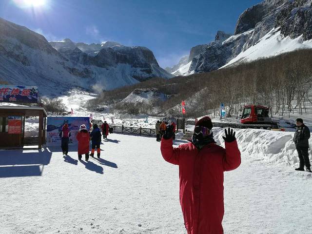 下身穿了1条薄的打底裤,1条加绒的保暖打底裤,1条抓绒的冲锋裤,1对护膝(景区门口租的,50元/对),1副雪镜(景区门口租的,50元/副,但是发现后面滑雪也要用的,而且戴雪镜比墨镜要暖和很多,所以要用到的多的话,价格不贵的话,可以出发前买一副);