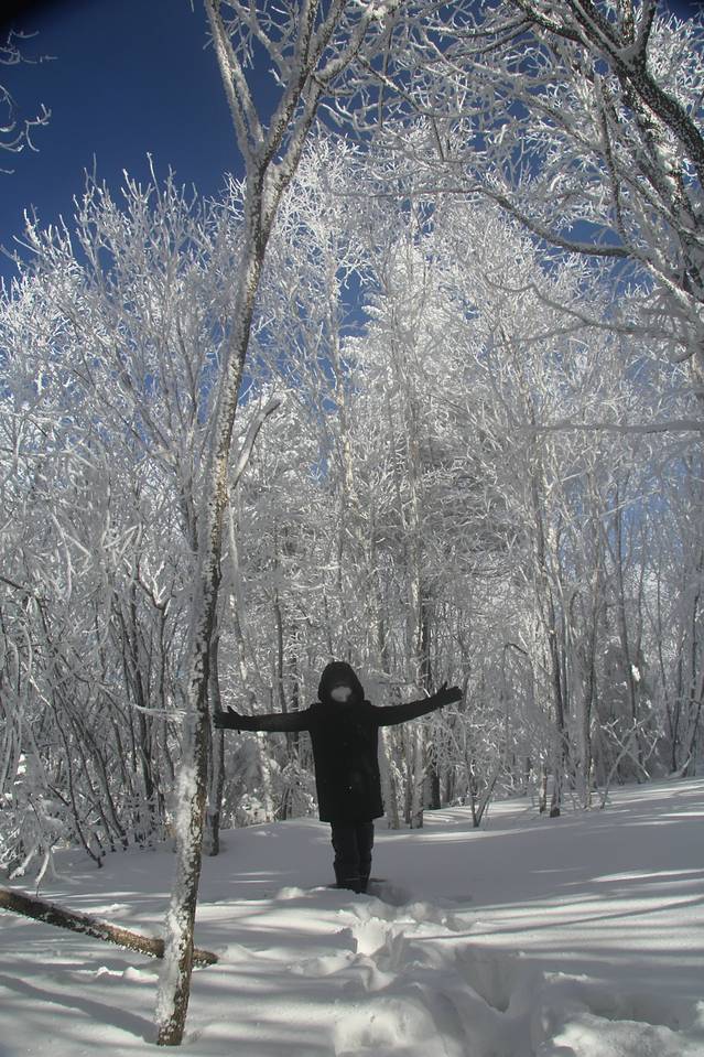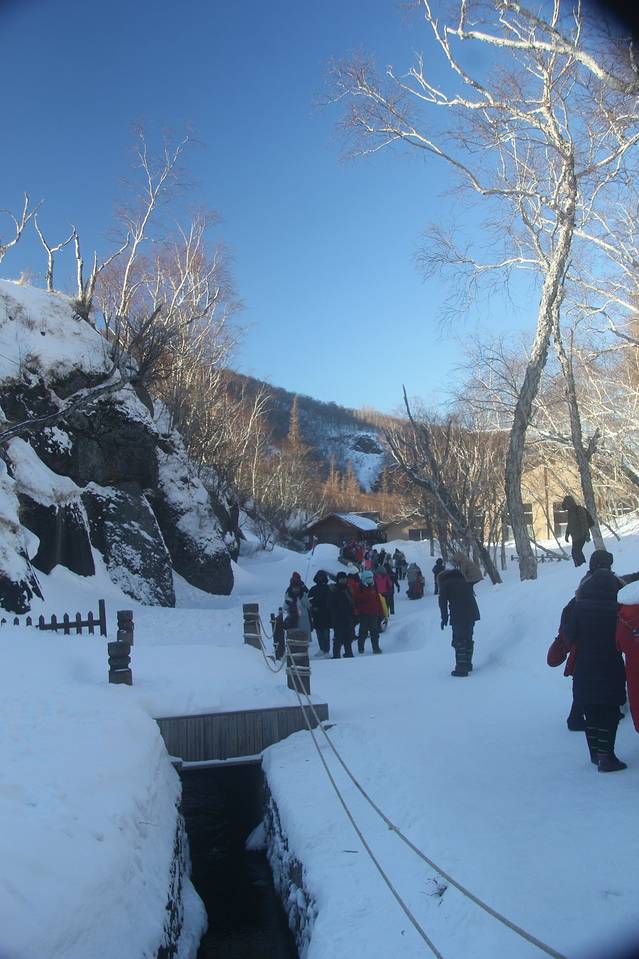入住是带温泉的,9点不到些,换上泳衣,穿上浴袍就去泡温泉了。温泉是室外的,据说水是从长白山天池流下来的。刚一开门,就瞬间觉得好冷,工作人员说,没事的,下汤了就马上会热的。然后我们就泡着温泉,头发结着冰,欣赏着因温泉的雾气而形成的小雾凇,愉快地度过了1小时左右。