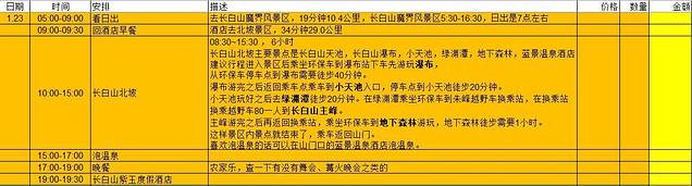 行程表:日期、时间、安排、简述、(价格、数量、金额,可以一起,或者另外做一个预算表)