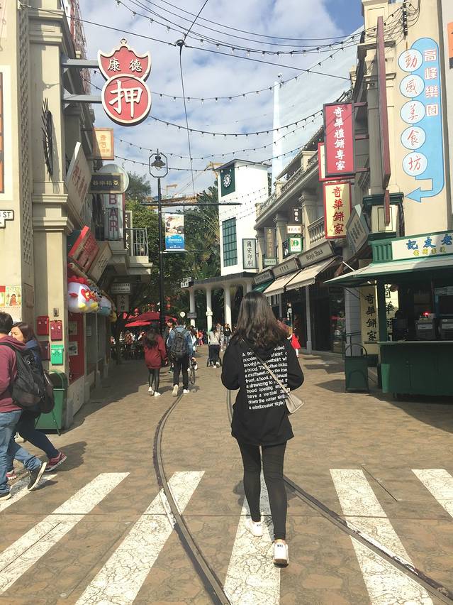 酒店坐车去氹仔官也街,方便。吃了个猪扒包,据说很有名。随便走走到了博物馆,类似西塘古镇的感觉,哈哈。正巧碰到友人推荐的新陶陶,可惜春节休假了,没吃成鱼翅煲。前往新濠天地,又去观摩了下娱乐场,逗比还整了张卡,说是能免费坐8摩天轮,那玩意确实挺酷的,还有天台花园。