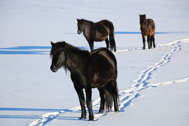 相机是所有摄影爱好者最关心的问题,我也感到焦虑。在行程开始前我上网查找经验、咨询摄影班的老师、咨询摄影爱好者、甚至叫海拉尔的哥们刘超拿相机出去拍照看相机在冰天雪地里会有什么反映。最后,我只采纳一位相机专柜老板的意见,他说:”每次拍完照就把相机揣在外套里面贴着自己的身体,因为体温才能让电池持久使用。“因此,我的外套就没有拉上拉链的时候,不过,在那么冷的环境下,电池还是会消耗得比较快。相机原厂电池比较耐用,我购买相机时附送的电池用完电后就报废了。我的相机是佳能70D,装进相机包就带它北上了。没有带脚架是我的失措。从户外进室内,相机表面会蒙上一层水雾,先不急着开机,因为室内空气暖和干燥,相机水气很快被蒸发,待半小时就可以开机。