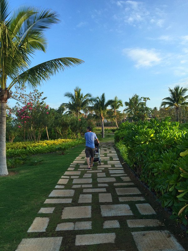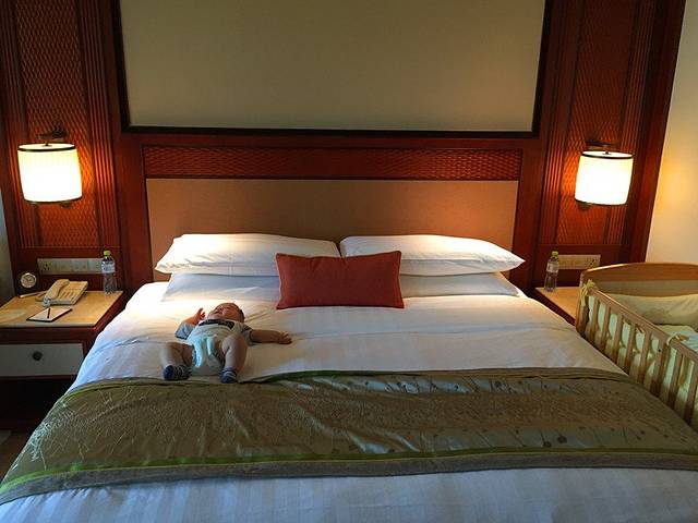 不推荐别墅,why?别墅不是更奢华?因为我去巴厘岛住过一次别墅,是高大上,是奢华,但是也会有很多小动物与你作伴,比如蚂蚁、蚊子、壁虎,更有甚者老鼠等其他不知名的生物。而且里面的泳池我一般都嫌不卫生,也不会下去游泳,最多就是用来摆拍。而酒店房间则不同,一般不会有蚊虫的困扰,但是选择酒店房间也要注意一点,一般五星酒店房间不管贵贱都不错,但要注意房间面积,最好选择60平米以上的房间,这样才会有足够大的空间,住起来很舒服,如果宝宝能跑了,也能跑得开。还有一点很重要,大床一定要2m的,双床一定要1.5m的。为什么呢?因为带着宝宝,三口人能躺开!当然这次我住的酒店也给我提供了婴儿床,我没用,毕竟不太习惯,在家里就跟我一起睡。