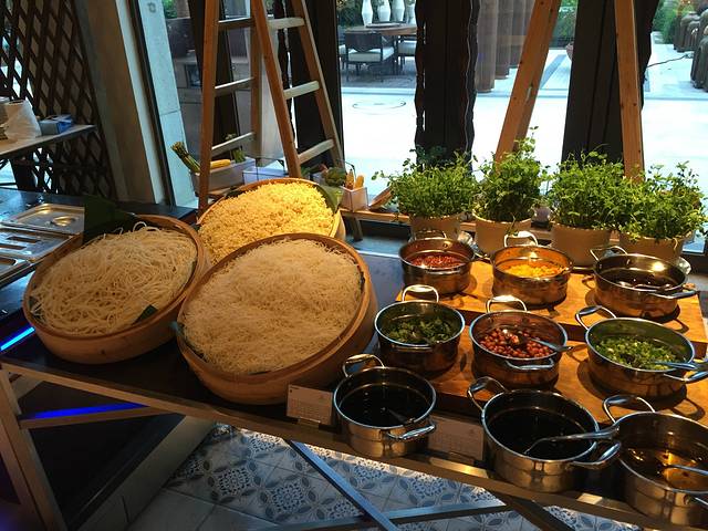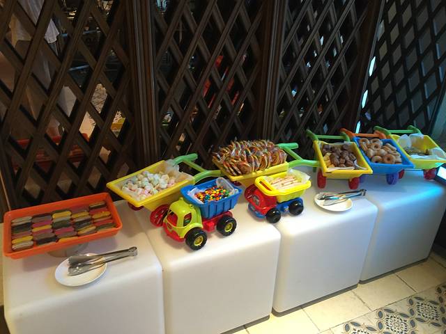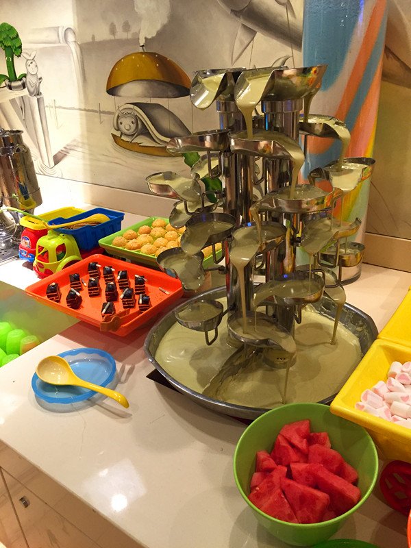 早上能能起得早,不到六点醒了,给他洗洗吃吃,七点又睡回笼觉,睡到八点多,起床就很开心。测了体温,身体健康!坐车车出门吃早餐啦!香格里拉的早餐简直超乎预期,超级丰富,中西都有,想吃什么有什么的感觉。而且还有儿童区,棒呆!上个图,过下瘾。吃了四天都没吃烦,每天最期盼的就是吃早餐的时候了……
