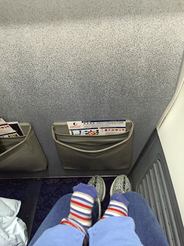 为什么订经济舱,因为商务舱贵了将近五倍!我辣么穷还是算了。于是找了熟人帮我选择了经济舱第一排的位置,也就是商务舱后面第一排。专业人士告诉我,带婴儿坐飞机要往前坐,因为前面声音小,对宝宝好,而经济舱第一排空间跟商务舱差不多,性价比极高。如果没有熟人,自己是选择不了第一排的,那怎么办?答案是没办法,只能早去机场,拼人品,用自己的颜值或者宝宝的颜值感化地勤,让他们帮你订到第一排。显然这种可能性比较小,因为我回程就是做的经济舱第三排,那叫一个挤,还好只有三小时,能能基本在睡觉。