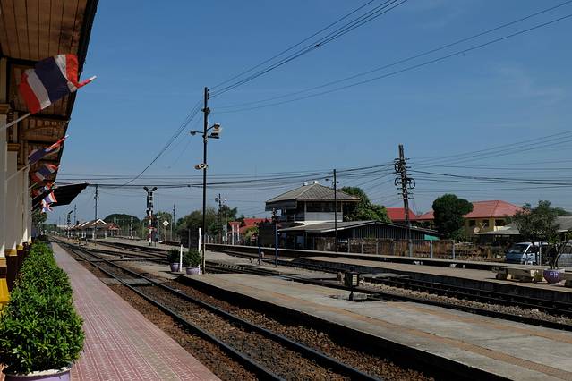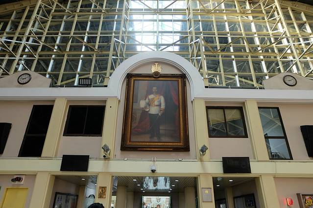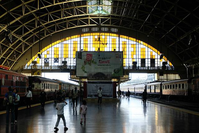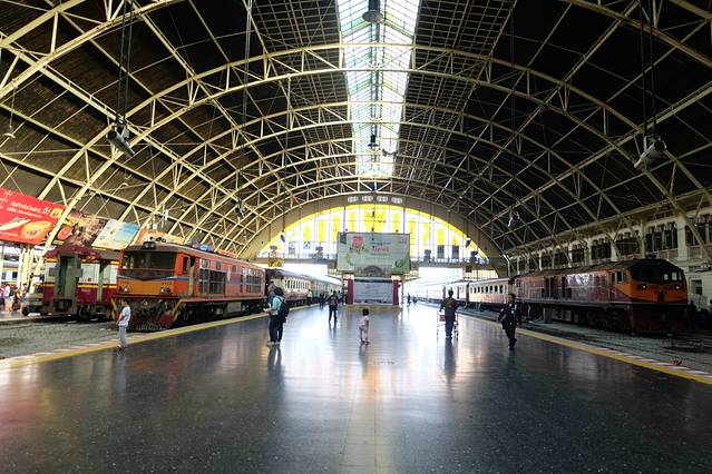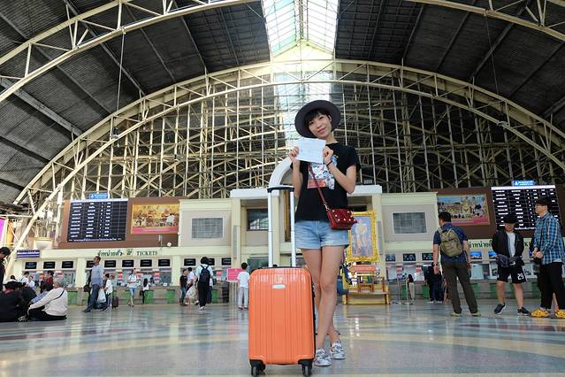 24号:作者早上9点就来到华南蓬火车站。由于换了酒店,住在素坤逸站附近,所以出行到火车站的路线更方便了(坐素坤逸站到华南蓬火车站的BTS)。如果依然住在国家体育馆站附近的酒店可以选择这样到达华南蓬火车站(在国家体育馆站坐MRT到Asok站(此站在素坤逸站附近),然后忘记哪个出口转弯处转坐素坤逸站到华南蓬火车站的BTS),准备出发大城。华南蓬火车站是《泰囧》电影的取景之一。