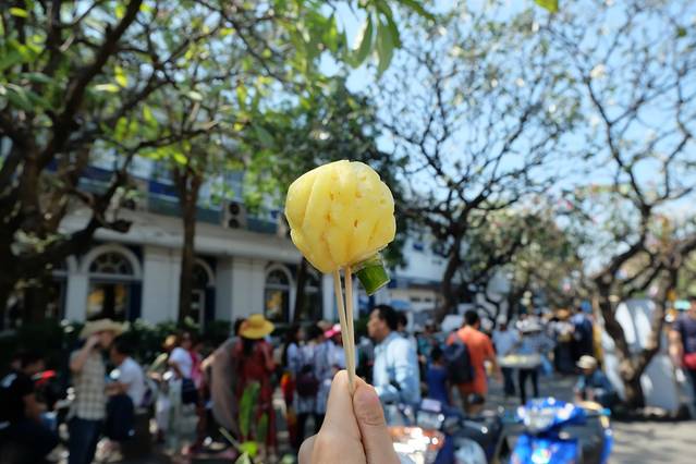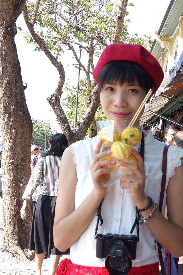 皇宫外面好热闹,有好多好吃的新鲜水果,作者最爱小菠萝。