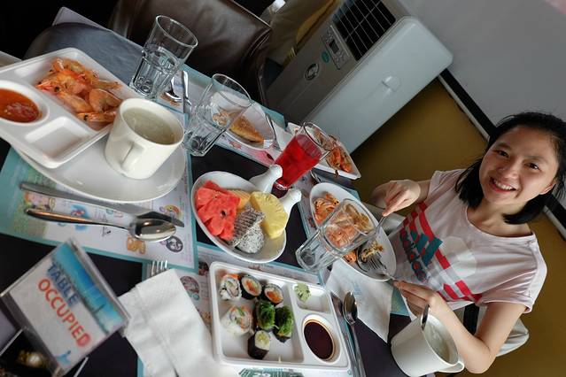 入住酒店已经是下午5点啦。感觉很疲惫,所以不坐地铁,就打mini的士去彩虹云霄酒店76楼吃自助餐。自助餐时间是两个小时。mini的士到处都有。