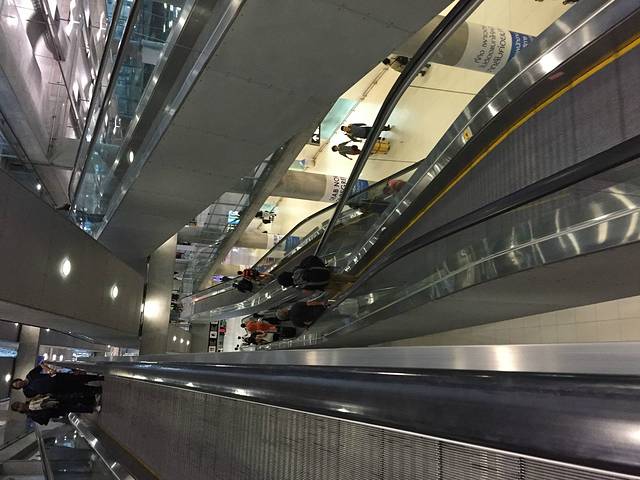 提交申请,拿到护照后。出机场门口往右手边走就会见到机场快线铁路(City Line)的提示,沿着这个扶手梯到底就会看到售票处。