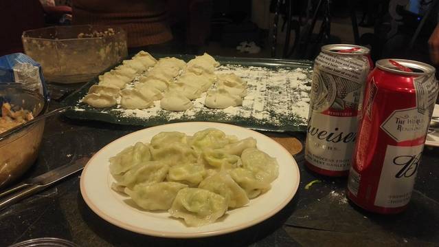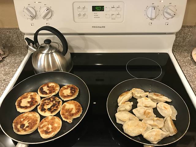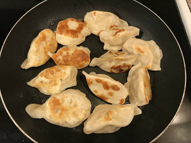 把昨晚剩下的面团烙了葱油饼,饺子煎一下解决了早餐。