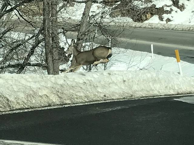 鹿群过去几只后,这只鹿在路边停下了脚步,等了几秒钟掉头下山去了,她后面的鹿群也都跟着返回了。原来对面有车从山上开过来,她们听到声音后停止了穿越。