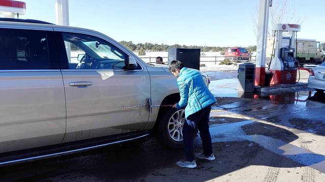 汽车油箱快空了,正好路过加油站,油价才2.28美金/加仑,直接加满。