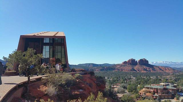 退房后按行程计划游览赛多纳小镇的景点,驱车十几分钟来到圣十字教堂。