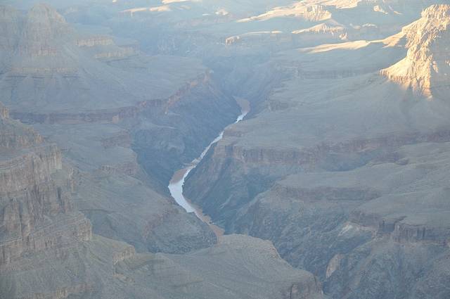 大峡谷是由奔腾汹涌的科罗拉多河经过亿万年不断冲刷侵蚀而成,峡谷随着科罗拉多河道蜿蜒曲折,全长400多公里,最宽处超过20公里,最深处超过2公里,是难得一见的地质奇观。