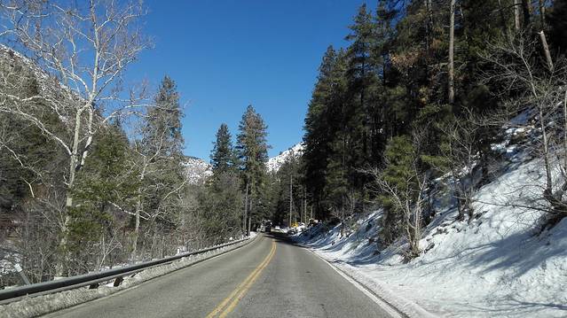 上周美西海岸下雨,内陆下雪,离开水坝后走不多远就看到路边的积雪。