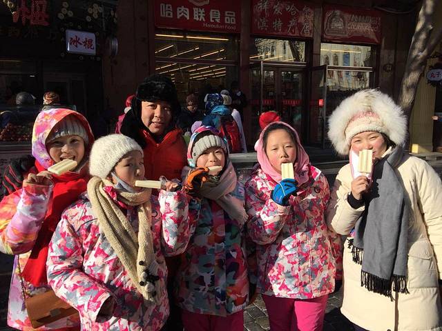 品尝马迭尔冰棍,因为气温低,所以没感觉吃冰棍时很冷,推荐!