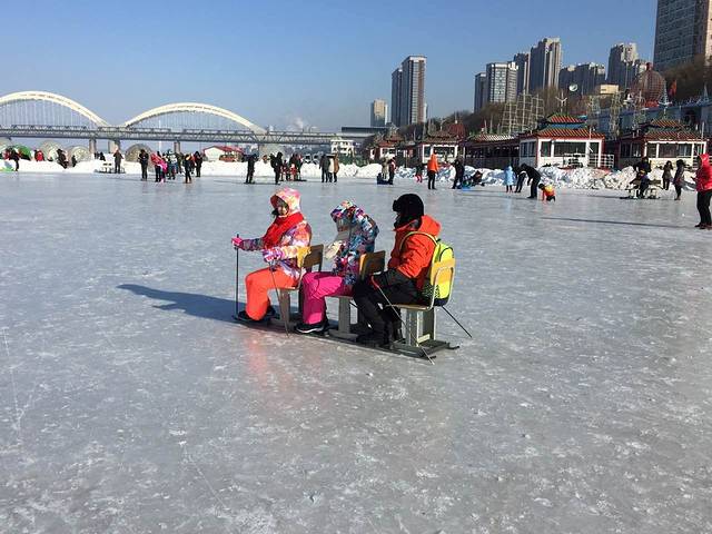 从圣索菲亚教堂出来,直接可以走到中央大道,中央大道上的美食挺多,如华梅西餐厅门前的面包,马迭尔冰棍、马迭尔西餐厅、烤串……吃完中餐,穿过中央大道,就到了松花江,松花江上也有许多的游乐项目,注意先谈好价格!穿过松花江就到了太阳岛,可以直接坐电瓶车到冰雪大世界,也可以先游玩太阳岛再乘坐的士到冰雪大世界。哈尔滨的士,大多数都不打表的,直接叫价,那价格黑呀!从冰雪大世界到酒店差不多20几元的的士费,但他们要价200元1辆车,所以在哈尔滨出行选择滴滴打车或乘公交车(地铁不到冰雪大世界)。
