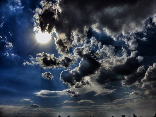 云很高、太阳时隐时现、戴着墨镜看的话像加了滤镜、美得不要不要的