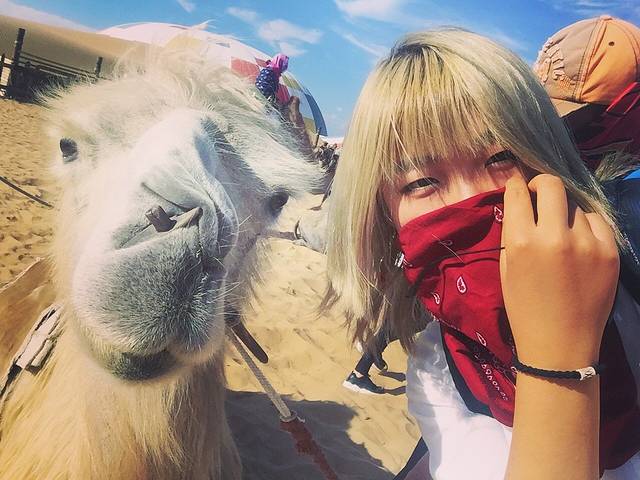 回来看着跟骆驼的合影、它的眼神天真无邪、鼻子上的木削子却让人隐隐作痛