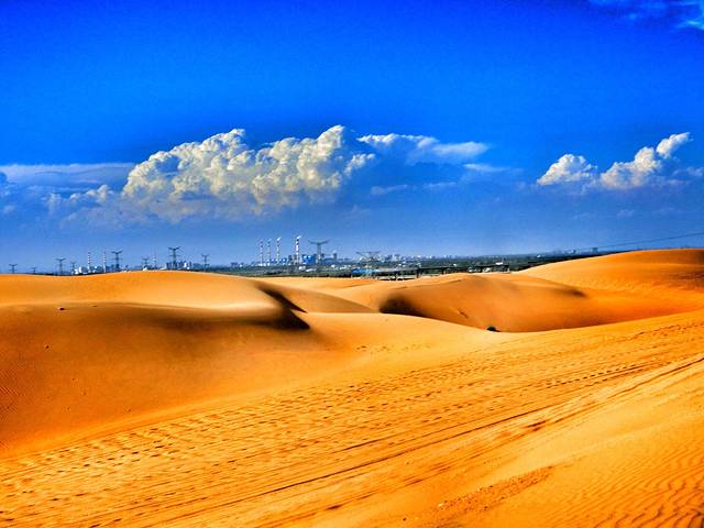 位于鄂尔多斯市内的响沙湾、路程将近一小时