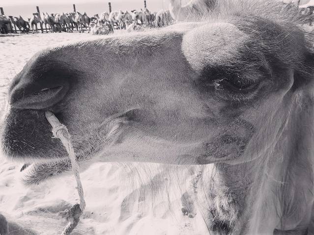 看到烈日下累到瘫倒的、还有毛都快掉光的骆驼只让我想起三毛的书名哭泣的骆驼