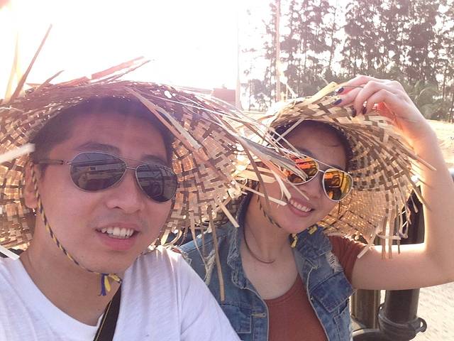 we were just like two contented farmer after a good harvest with these vietnamese style hats on .