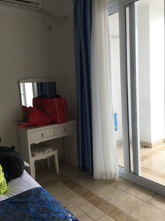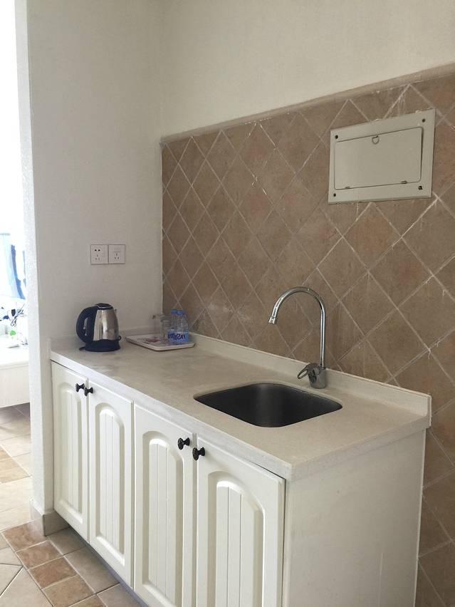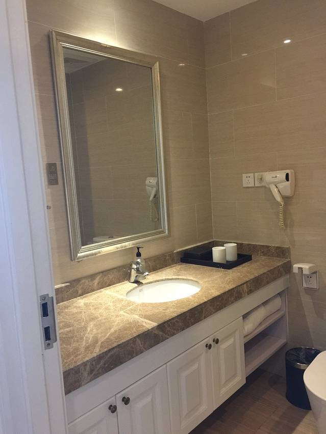 顺顺利利入住第一家预定的海尚湾畔度假公寓(良辰海缘店),在A栋309接待室方便快捷的办理了入住手续,这里确实要给去哪儿网开通的闪住功能点一个大大的赞,无需缴纳押金,前台身份证登记入住,第二天12点前退房,房卡交给老板就可以立刻走人了,免查房退押金等繁琐的手续,游玩时间分分钟不耽误,因为大年三十入住率不高,老板直接给我从特惠海景双床房升级为经典海景双床间,进门看到阳台上的浴缸,儿子立刻心花怒放,结果发现只有冷水没有热水,顿时就郁闷了。第二天早上拉开窗帘,只见面朝大海,春暖花开,大年初一的头一天心情超好的。下楼出门就是细细软软的沙滩,因为不是旺季,人流量不大,所以海滩干干净净的,没有人造的垃圾,买了一套挖沙的工具,儿子就直接在海滩上挖坑玩。