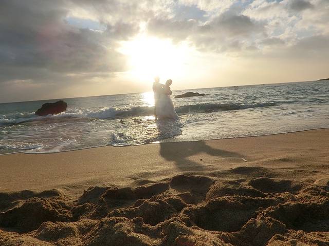 so soooo romantic it's to take pictures with your future spouse on the beach with this beautiful sunset ~!