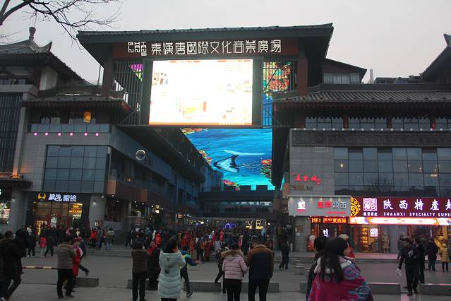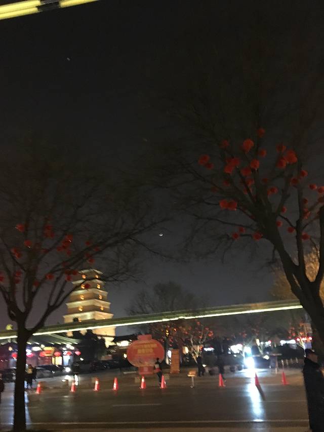 夜游西安城,年味儿十足,远处就是大雁塔,不凑巧,又错过了开放时间😂门口望了几眼😄