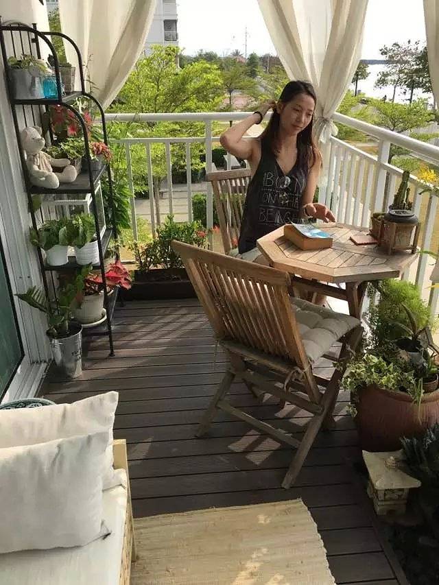 a very big and clean balcony with a lot of beautiful gardening, you could even see the sunrise on the balcony.