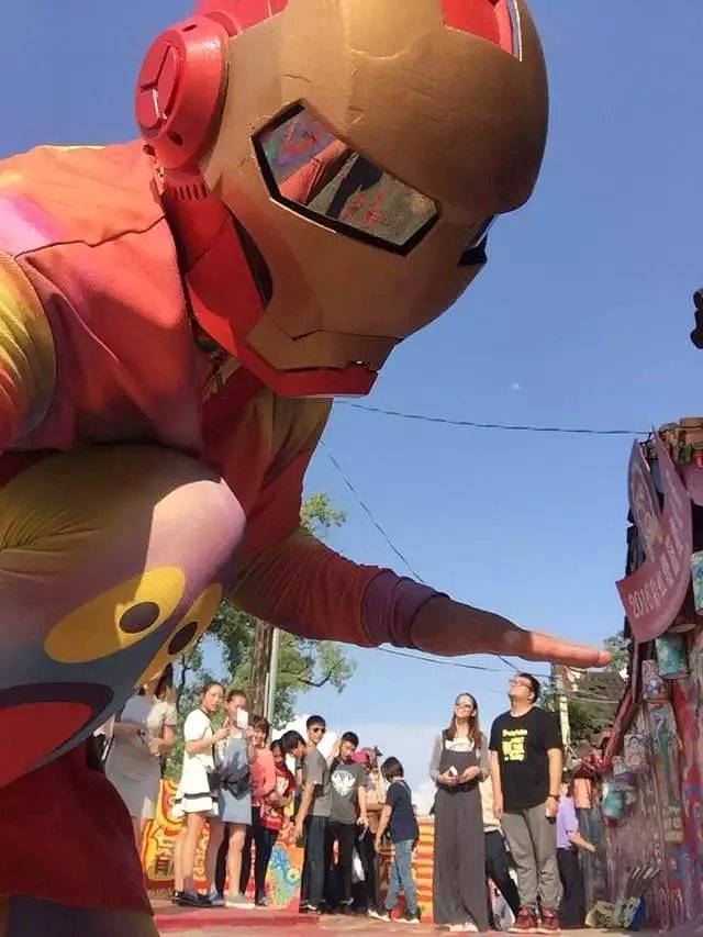the only things worth stopping was the iron man who's very good at taking selfies.