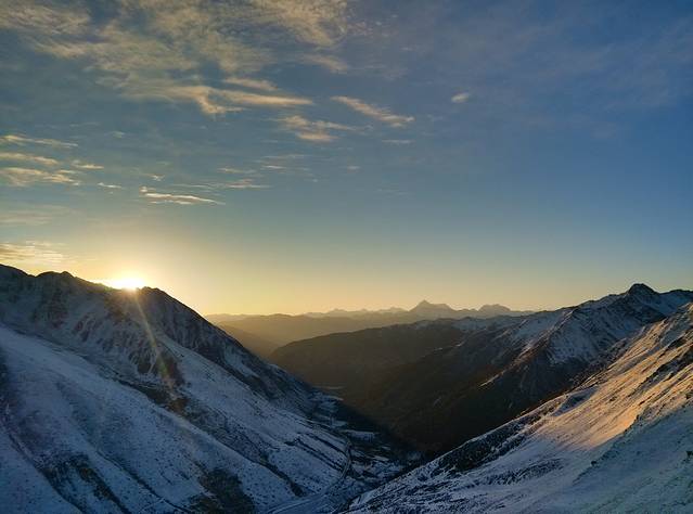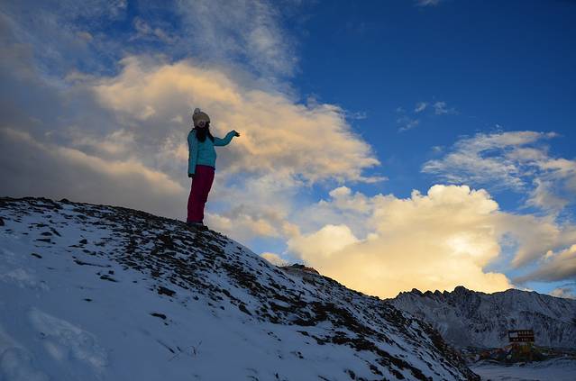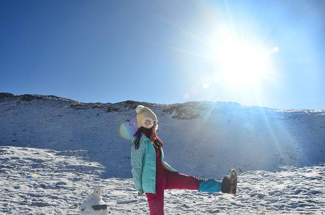 次日迎着明媚的阳光去往雪山脚下,过好的天气让内心甚是忐忑。一心祈祷相会一场大雪纷飞。