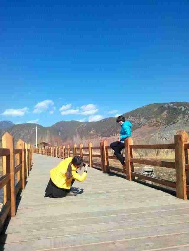 从走婚桥回去的路上,看见几个小朋友在跳绳,看见我在拍他们,还很害羞呢