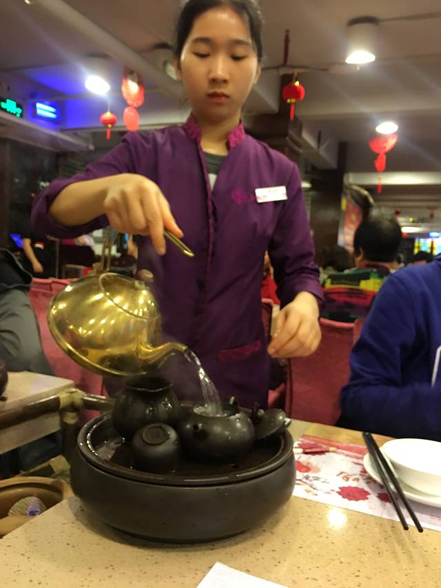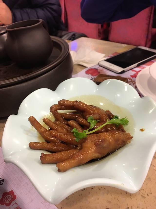 从酒店溜溜达达的用了十几分钟。12点半左右到的,那人多的。。。在北京习惯等位了,所以这阵势不算什么。等位等了半个小时,比预想的快。在这里要夸一下南方人的头脑,结合现在网络信息时代,关注他们的公众号,可以实时关注广州所有门店的等位信息!自己决定去哪家,这点很好。上菜等了半个小时。每个人都有6元或者8元的茶水费。服务员帮你沏好功夫茶。很有意思。这就是所谓的早茶吧。呵呵。我们喝的是普洱,消食的,6元。冲1包就够了,另外一包带走了。我们2个人一共点了9样东西,有3样都没有了!我好想吃的红米肠,看着别的桌一份份的上,我都受伤了。。椰汁糕3星推荐,萝卜糕5星推!!!连我这个不爱吃萝卜的都吃了2块(一共3块!)艇仔粥的碗老公说都是tvb剧里用的那种大公鸡的,很有意思。当然粥也不错,4星!豉汁凤爪,4星!叉烧包3星推!等了一个小时的虾饺皇也一直等不上来给退了(旁边桌晚到的点的都早早上了,而且他们还要追加一份,说特好吃!哎。。所以看来也不是按照顺序上餐的,有点乱)。一共花了110多。后来去了北京路庆幸没有在点都德吃太多,因为北京路的好吃的太多了!!!