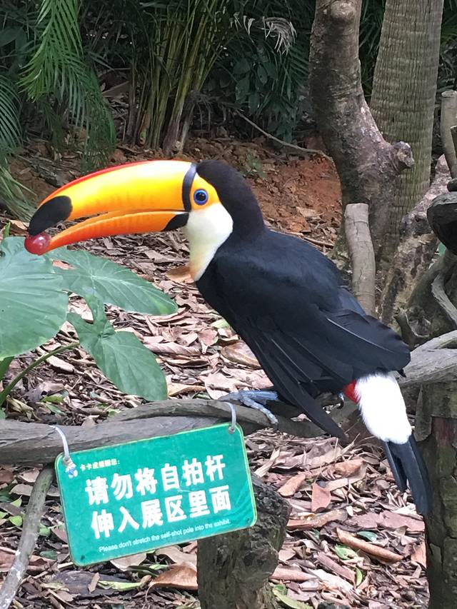 我们的行程是:8点35从南门进的,安检查包,查门票,然后进园。根本没什么人,感觉像包场一样,特别好。老公在门口商店买了一个鹦鹉的帽子126元,是帽子里最贵的,但是特别好看!还有88元的。,我因为第一天看到大街上有人带白虎的耳朵发夹,门口商店没有,后来进去在别的商店买的,46元。考拉冰箱贴25元。其实我觉得来这里买这些小玩意还是很有必要的。毕竟有童心嘛,尤其是小朋友肯定会喜欢小动物的帽子或者书包,别的地方买不到,家长出门玩就不要张口闭口的贵贵贵,正确的引导和教育,比张口闭口说贵要来的好一些吧,像帽子这种可以多次使用的就可以买一个,真的很可爱。进南门就领地图,这个很重要,园区也有二维码扫描电子点图,但是不好使,退出去就没有了还要重新扫!看了孔雀火烈鸟之后顺右手东边走到熊猫村,赶上9点20分的熊猫4d电影,只有十几个人看的,要坐在中间位置靠前排,比较有感觉,全场可以容纳500人,小朋友肯定喜欢,推荐看,另外又了解一下新开的缆车是怎么回事,然后继续向天鹅湖走。这时候已经到达北门了,再从天鹅湖往南门方向走西边路回来,11点半左右到达考拉餐厅吃的。这时候动物园已经看完2/3部分了。