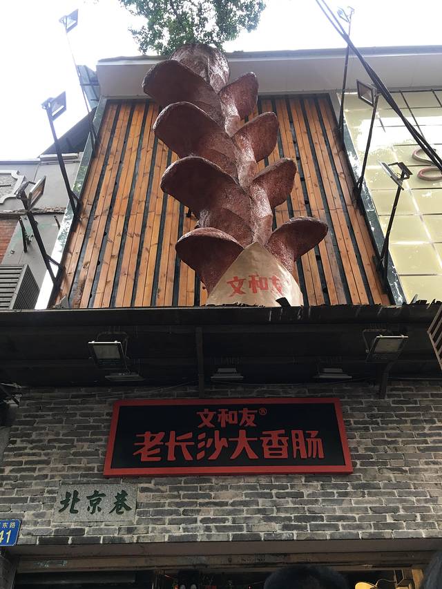 老长沙大香肠,3星,我觉得一般,她说很好吃,越嚼越香。排队的人也很多。只能现金支付