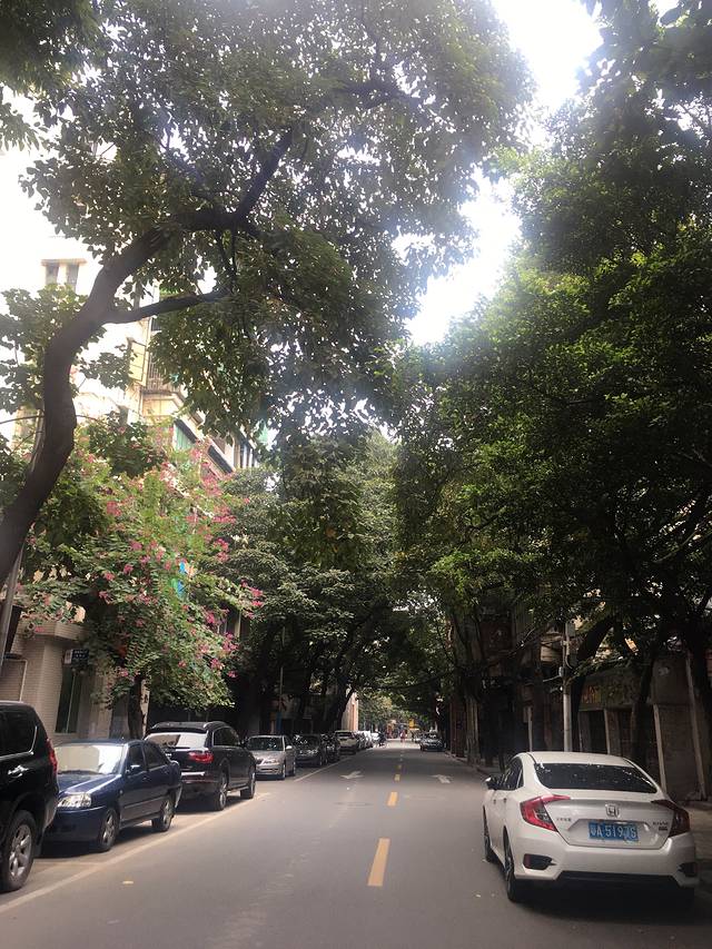 从北京路骑车到上下九,15分钟左右(3公里)。上下九和北京路完全不一样的两种风格。这边的建筑物很有特色,岭南风情的骑楼建筑,给人的感觉是比较老式的广州风格。很多老字号也在这里有。