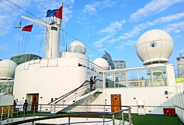 习惯了城市熙攘拥挤的生活,难得如此自由的独处空间,更觉珍贵。蓬松柔软的枕头,被阳光晒着的大床,恰到好处的温度让我恣意享受这片刻恬淡。推开阳台的门,咸咸的海风带着潮热的气息迎面而来。海鸥在低空盘旋,海浪轻拍着船体,无边的大洋上泛着粼粼波光,仿佛这个世界在轻轻地合唱,为我歌颂一曲“生活如此多娇”。