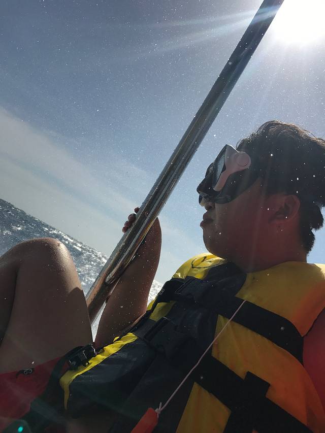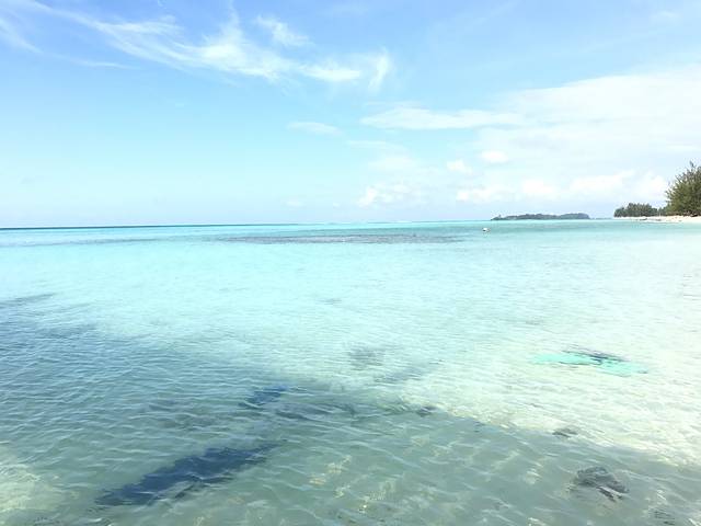 今天老公下水去浮潜,浪有些大,我就没下去了,老公说,水下鱼超级多,很多种类,但是一定要注意安全,有人就受伤了的。